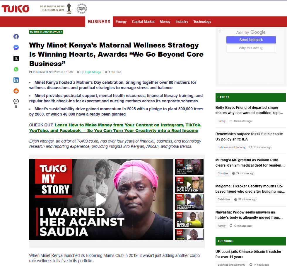 - Minet provides postnatal support, mental health resources, financial literacy training, and regular health check-ins for expectant and nursing mothers across its corporate schemes